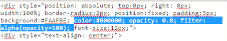 如果你的前面opacity號碼越低,那麼透明度越高;相反,號碼越高,可見度就越低,極限是1.0。1.0就沒有效了的。那我的嘛.. 我的前面是0.8,後面我放100 :)